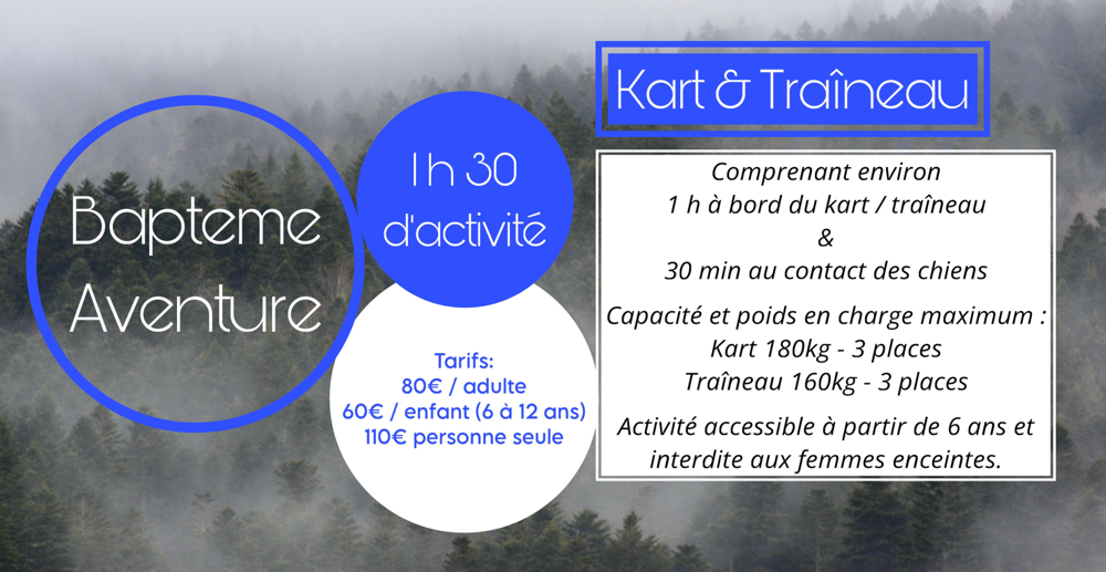 L'activité se décline en plusieurs formules, le temps d'activité, la durée à bord du traîneau/kart et votre taux d'implication / immersion varient en fonction.